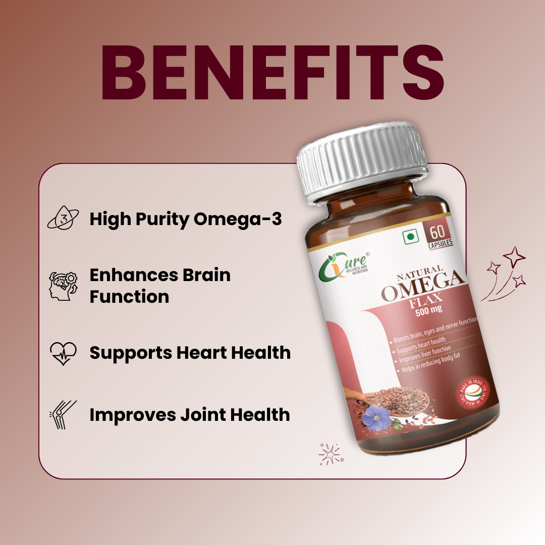 iCure Omega 3 capsules support heart health by managing triglyceride levels, improve joint flexibility and mobility, and contribute to enhanced brain and eye health.