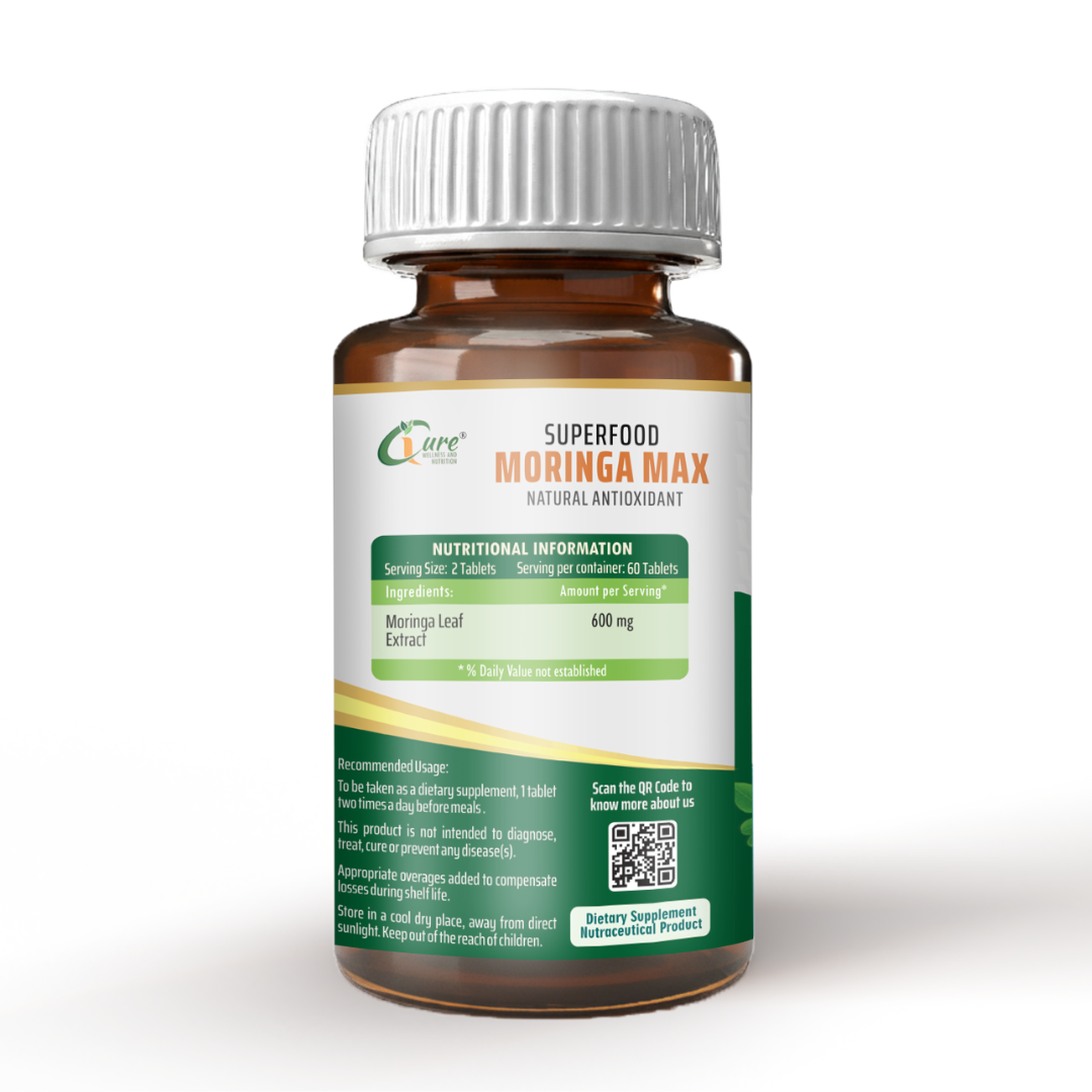 iCure Moringa Max delivers the nutritional power of Moringa in a highly concentrated and convenient tablet form. Known as the “Miracle Tree,” Moringa provides rich micronutrients, antioxidants, and essential minerals that promote daily wellness and overall vitality.