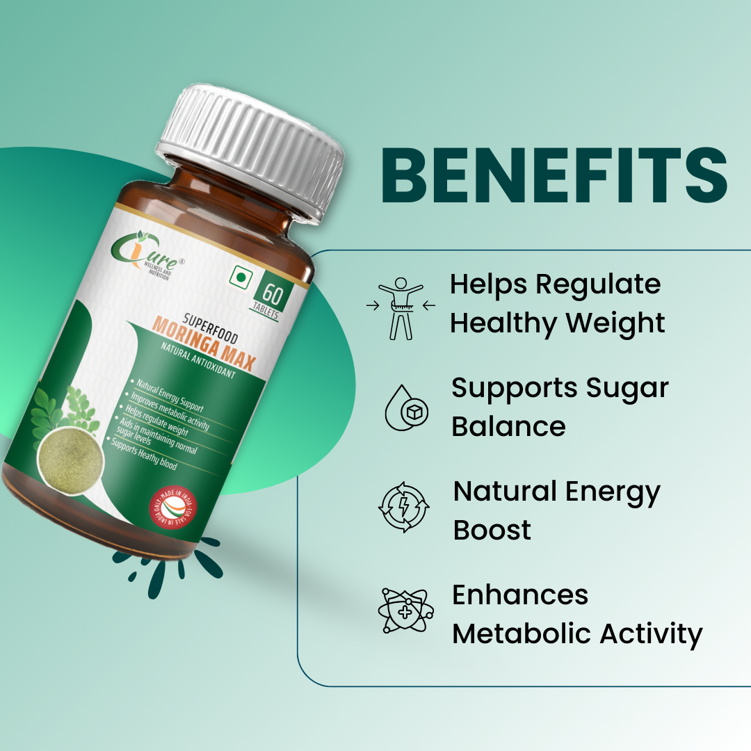 iCure Moringa Max is a nutrient-dense superfood supplement designed to support daily energy, metabolism, and overall wellness. Packed with pure Moringa Leaf Extract, this natural antioxidant formula helps balance blood sugar levels, enhance metabolic activity, promote healthy digestion, and nourish the body with essential vitamins and minerals. It is ideal for individuals seeking improved vitality, better nutrient intake, and natural daily wellness support.